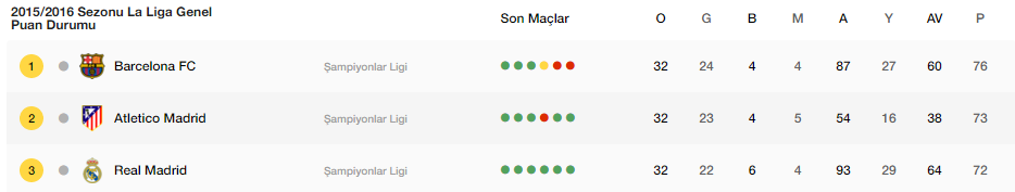 Barcelona'nın puansız geçtiği son iki haftayı galibiyetlerle kapatan ikinci Atletico Madrid ve üçüncü Real Madrid'de ise şampiyonluk umutları bir hayli arttı.