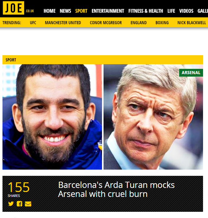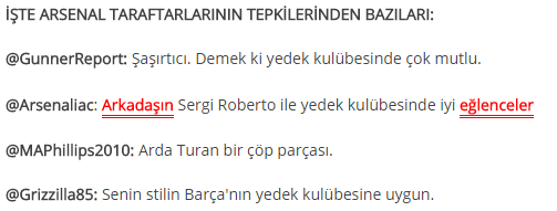 Ülkemizi İspanya'da Barcelona formasıyla temsil eden milli gurur Arda Turan'ın Arsenal ile ilgili yaptığı açıklamalara tepki geldi.