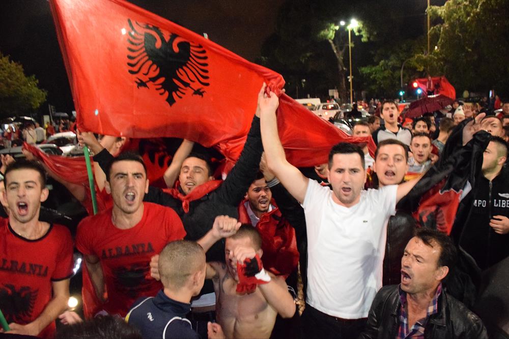 Arnavutluk'un başkenti Tiran'daki Aya Teresa Meydanı'nda toplanan binlerce kişi, büyük ekranlardan maçı izledikten sonra, bu başarıyı davullar eşliğinde coşkuyla kutladı.