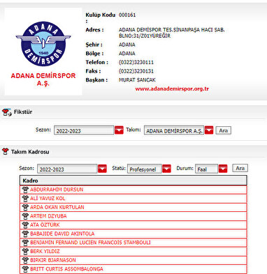 - Adana Demirspor'un yeni transferi Artem Dzyuba'nın Fenerbahçe maçında oynama ihtimali bulunuyor. Çünkü Adana Demirspor, Artem Dzyuba'nın lisansını çıkarttı. Teknik direktör Vincenzo Montella'nın görev vermesi durumunda Dzyuba, Fenerbahçe karşılaşmasında süre alabilecek.