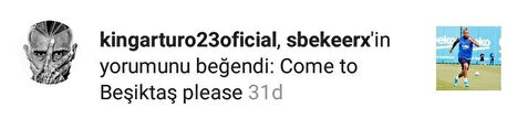 Şilili yıldız, kendisine "Come to Beşiktaş" yazan bir takipçisinin yorumunu beğenirken, deneyimli oyuncunun bu hareketi siyah-beyazlı taraftarları heyecanlandırdı.