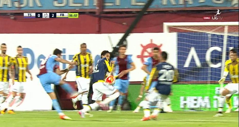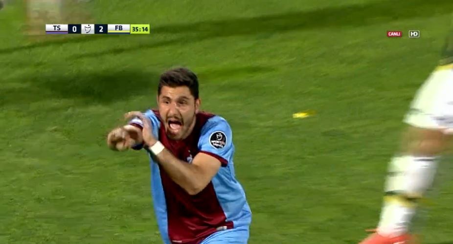 Süper Lig'in 30.haftasında Fenerbahçe deplasmanda Trabzonspor ile karşılaşıyor. Mücadelenin 34.dakikasında ceza sahası içinde Hasan Ali'nin eline çarpan top sonrası hakem Bülent Yıldırım'ın devam kararı vermesi Trabzonsporlu futbolcuları isyan ettirdi.