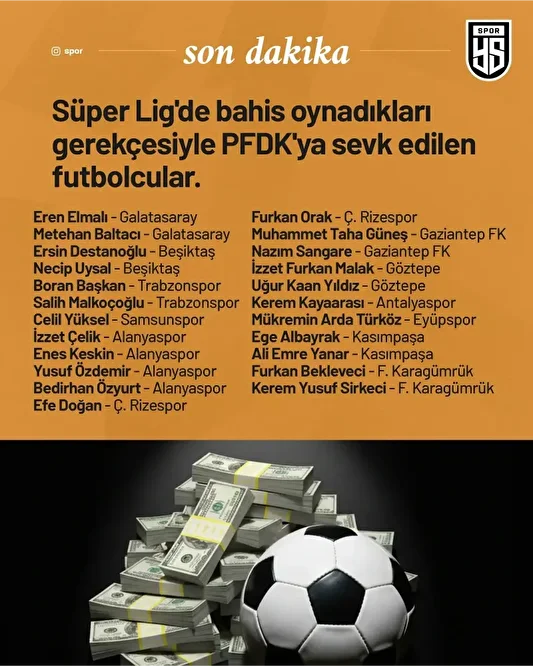Türkiye Futbol Federasyonu, profesyonel liglere yönelik olarak yürütülen bahis soruşturması kapsamında bahis oynadığı tespit edilen 1024 futbolcuyu açıkladı ve bu isimleri Profesyonel Futbol Disiplin Kurulu’na (PFDK) sevk etti. TFF daha önce bazı hakemlerin ismini de açıklamış ve onları da PFDK'ya sevk etmişti. Kamuoyu bu isimlerin, yakın akrabalarının da incelenmesini bekliyor.