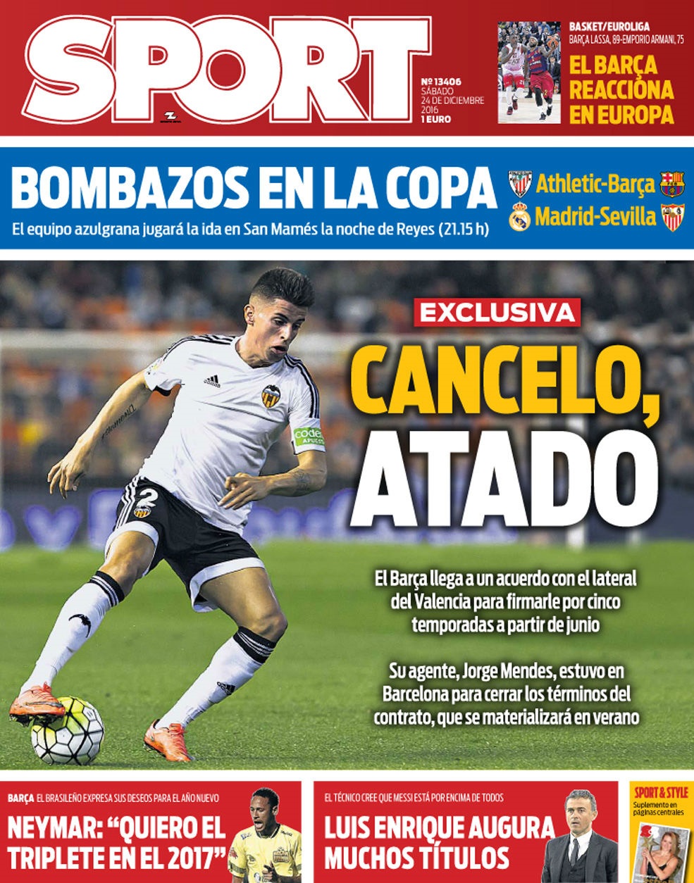 İspanyol basınından Diario Sport'un haberine göre; Barcelona, uzun süren sağ bek arayışına noktayı koydu. Katalanlar, Valencia'nın sağ beki Joao Cancelo için İspanyol kulübüyle sezon sonu için anlaşmaya vardı. Haberde yer alan detaylara göre; Katalanlar, bu transfer için 30 milyon euro ödeme yapacak.
