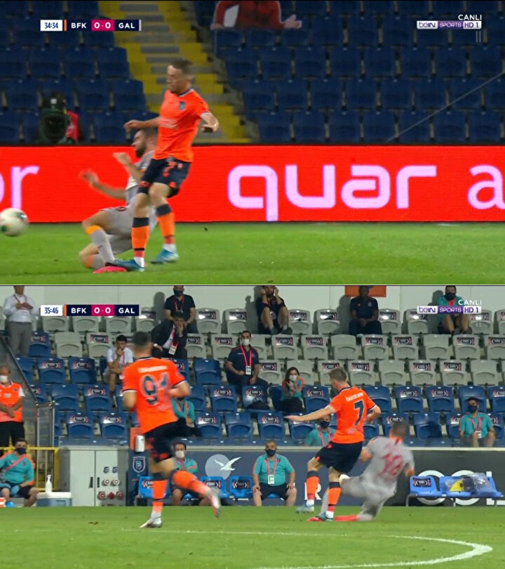 Başakşehir-Galatasaray maçının ilk yarısında tartışmalı bir pozisyon yaşandı.