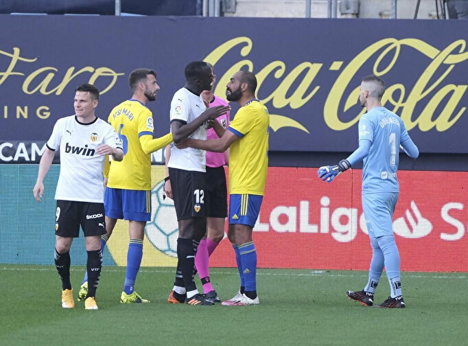 Cadiz-Valencia maçı, ev sahibi takımın 2-1'lik üstünlüğüyle sona ererken, Diakhaby'nin maruz kaldığı ırkçı söylem futbolun önüne geçti.