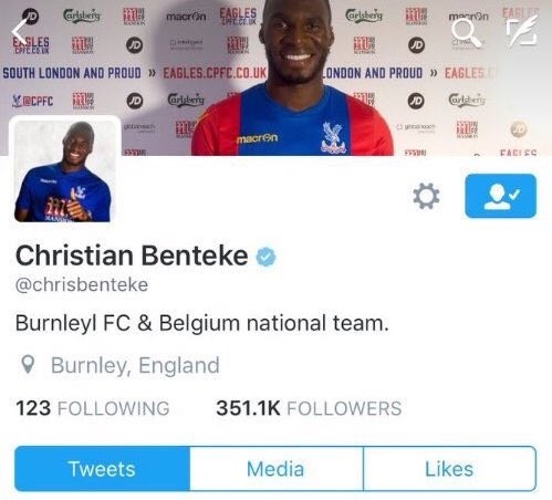 Crystal Palace'a transfer olan Christian Benteke, yeni takımının taraftarlarını kızdıran bir hata yaptı. Yeni formasıyla poz verdikten sonra Twitter'da ki 'bio'sunu değiştiren futbolcu Liverpool'u silerek 'Burnley' yazdı. Bunun ardından Crystal Palace taraftarı yıldız isme tepki mesajları attı.