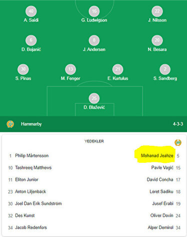 Öte yandan Mohanad Jeahze, Hammarby'nin Varbergs ile oynadığı maça ilk 11'de başlayacaktı ancak Hammarby teknik direktörü Marti Cifuentes, Mohanad Jeahze'nin ısınma esnasında arka adalesinde ağrı hissettiği için Varbergs maçının ilk 11'inden çıkartıldığını açıkladı.