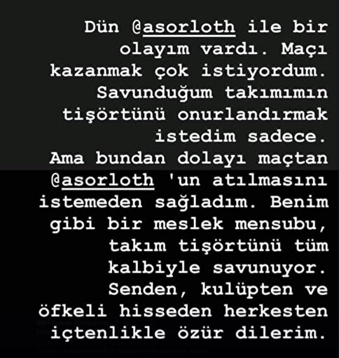 Brezilyalı futbolcu paylaşımında, "Maçı kazanmayı çok istiyordum. Takımımın formasını onurlandırmak istedim sadece. Bundan dolayı maçtan Sörloth’un atılmasını istemeden sağladım. Senden, kulüpten ve herkesten içtenlikle özür dilerim" ifadelerini kullandı.