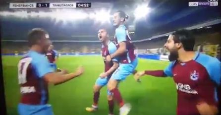 Trabzonspor, Süper Lig'in ikinci haftasında Fenerbahçe ile deplasmanda karşılaşıyor. Bordo mavililer 4. dakikada Burak Yılmaz'ın attığı golle sarı lacivertliler karşısında 1-0 öne geçti. Tecrübeli futbolcunun attığı golün ardından yaşadığı sevinç, tribünlerin karışmasına neden oldu.