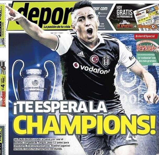 Peru basınından Depor gazetesi, Sao Paulo forması giyen Christian Cueva'ya Beşiktaş forması giydirerek manşetine taşıdı.