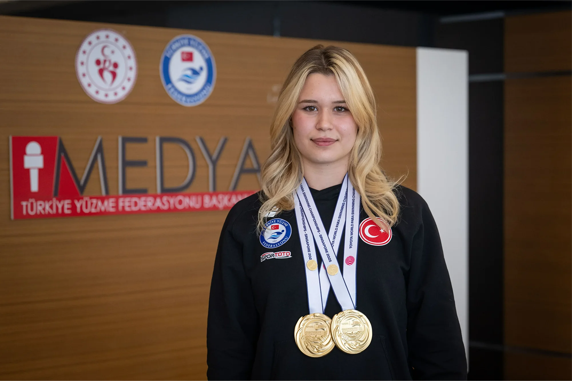 2025 Dünya Para Yüzme Şampiyonası’nda tarihi başarı elde eden milli sporcu Defne Kurt, altın madalyasını Gazze’deki çocuklara adadı.