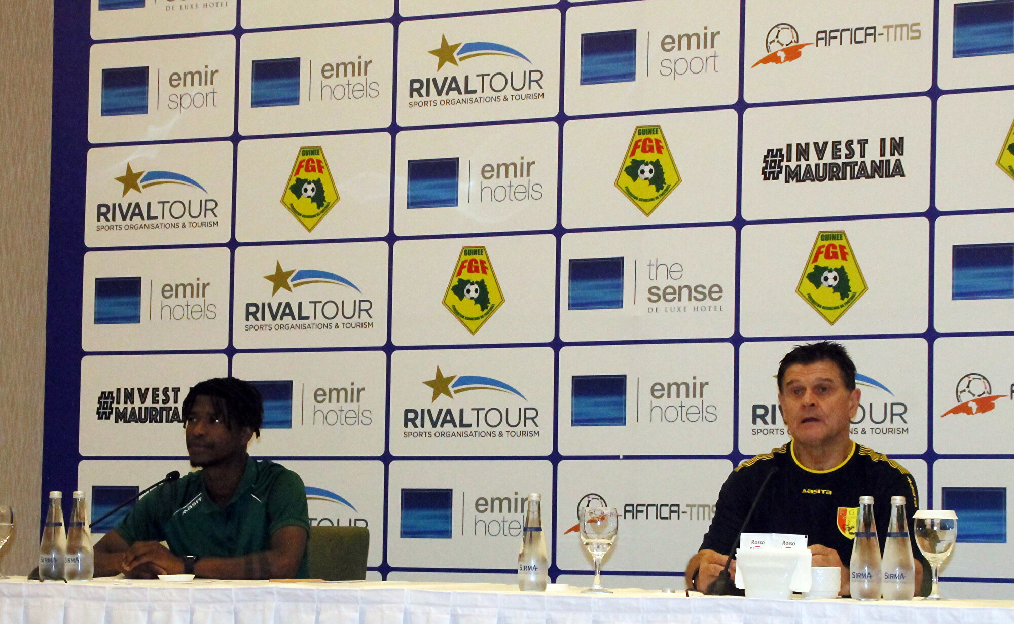 Didier Six, Gine Milli Takımı'nın Manavgat ilçesinde kamp yaptığı otelde düzenlenen basın toplantısına oyuncusu İbrahima Sory Conte ile katıldı.