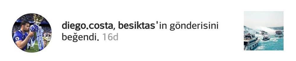 Diego Costa da Instagram hesabından sürpriz bir harekete imza atarak Beşiktaş'ın Boğaz'daki şampiyonluk kutlamasının videosunu beğendi.