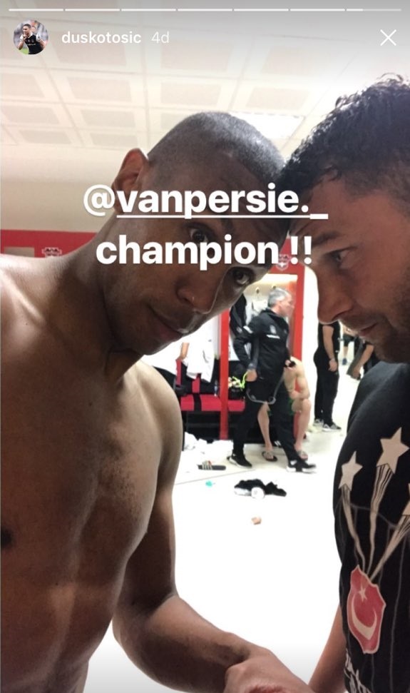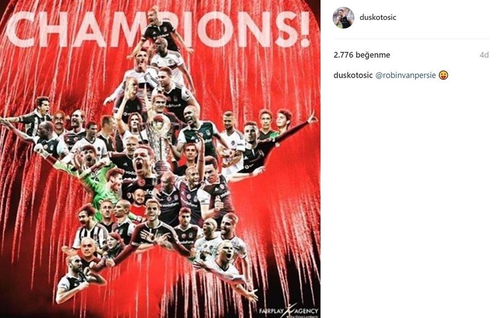 Sırp futbolcu, şampiyonluk sonrasında attığı görseli Van Persie'yi etiketleyerek paylaştı. Bu paylaşım siyah beyazlı taraftarlar tarafından binlerce beğeni alırken Fenerbahçeli taraftarlardan tepki gördü.
