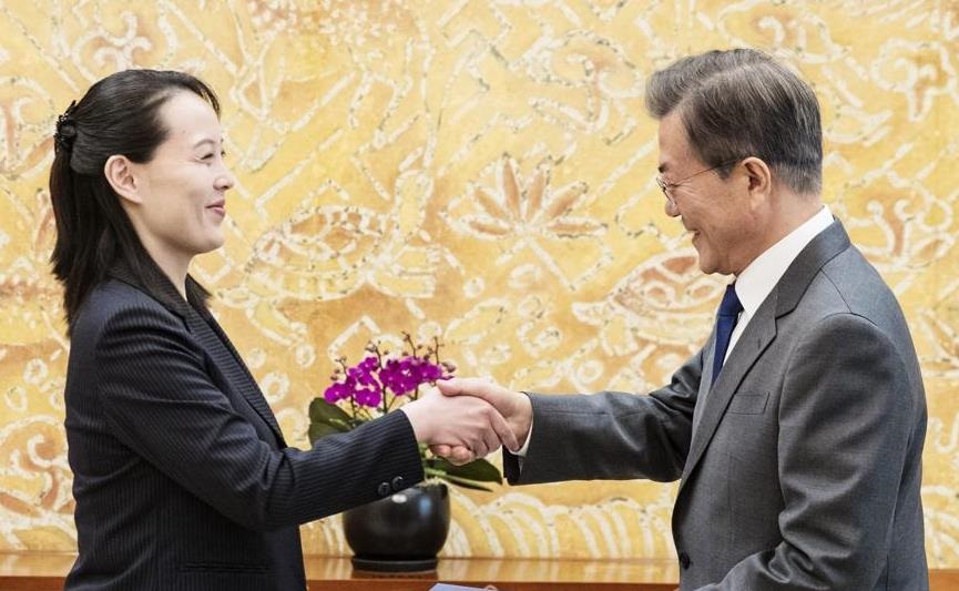 Pyeongchang Kış Olimpiyatları için Güney Kore'de bulunan Kuzey Kore lideri Kim'in kız kardeşi Kim Yo-jong ve Moon başkent Seul'da Başkanlık Sarayı'nda bir araya geldi.