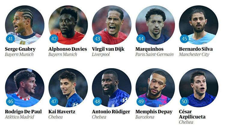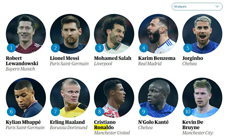 Polonyalı golcüyü sırasıyla; Lionel Messi, Muhammed Salah, Karim Benzema ve Jorginho takip etti. Cristiano Ronaldo, 8. sırada kendisine yer bulabildi.