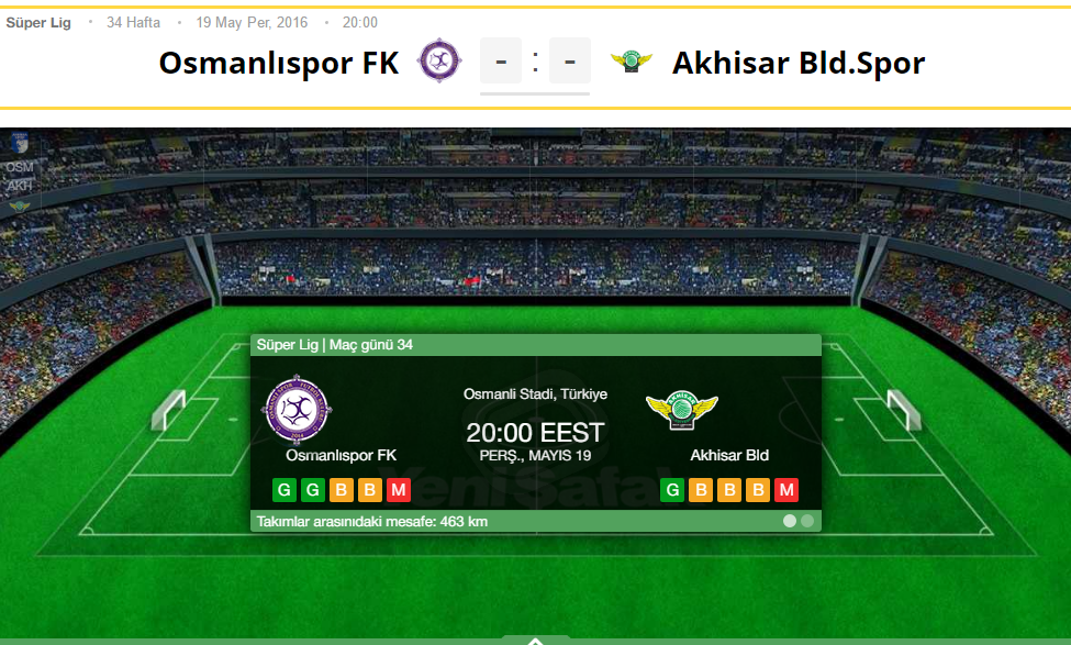 - Osmanlıspor-Akhisar Belediyespor: 1-0
