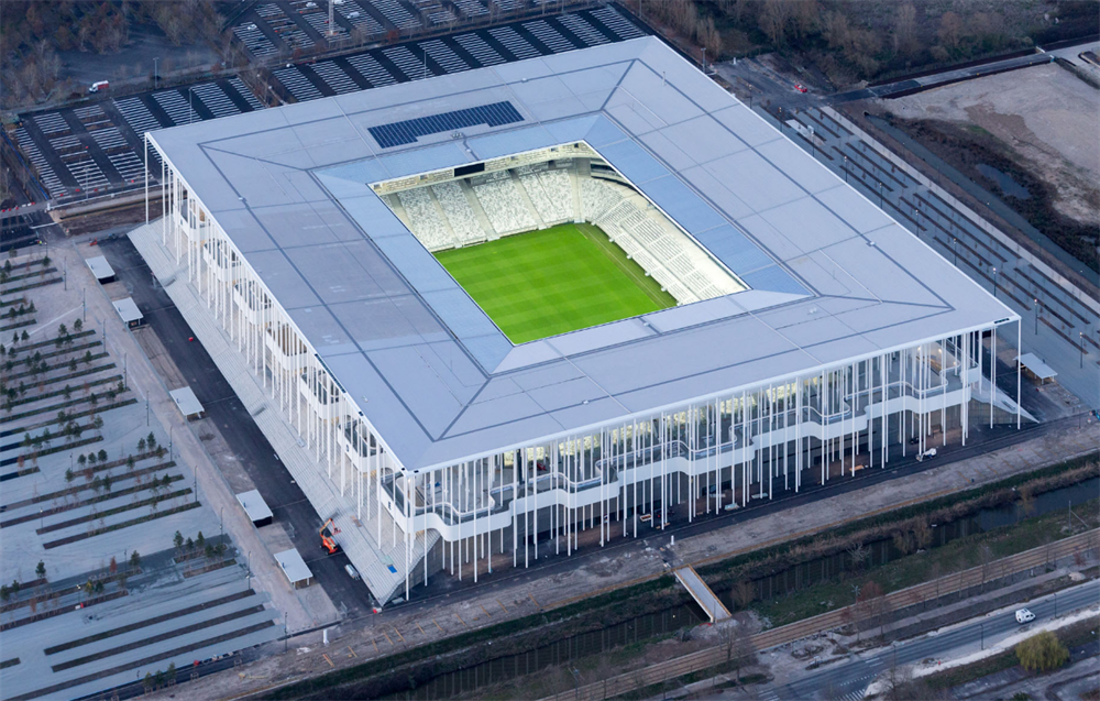 Çok sayıda ince kolonu ve basit formuyla öne çıkan Herzog & de Meuron tasarımı Yeni Bordeaux Stadyumu 2015 yılında tamamlandı. 42 bin kişilik stadyum kapasite ve kullanım açısından esnekliğe sahip olmakla birlikte tüm ziyaretçiler için ortalama bir görüş mesafesi sunuyor. Yapıda sadece ragbi ve futbol maçları değil, aynı zamanda konserler ve çeşitli programlar da yer alabiliyor.