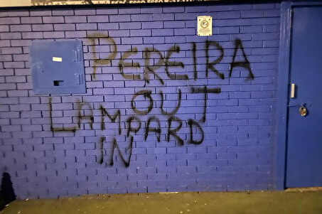 Kulübün gündemindeki isimlerden Frank Lampard'ın Everton'ın başına geçmesini isteyen bazı taraftarlar, stadın duvarına "Pereira dışarı, Lampard içeri" yazdı.