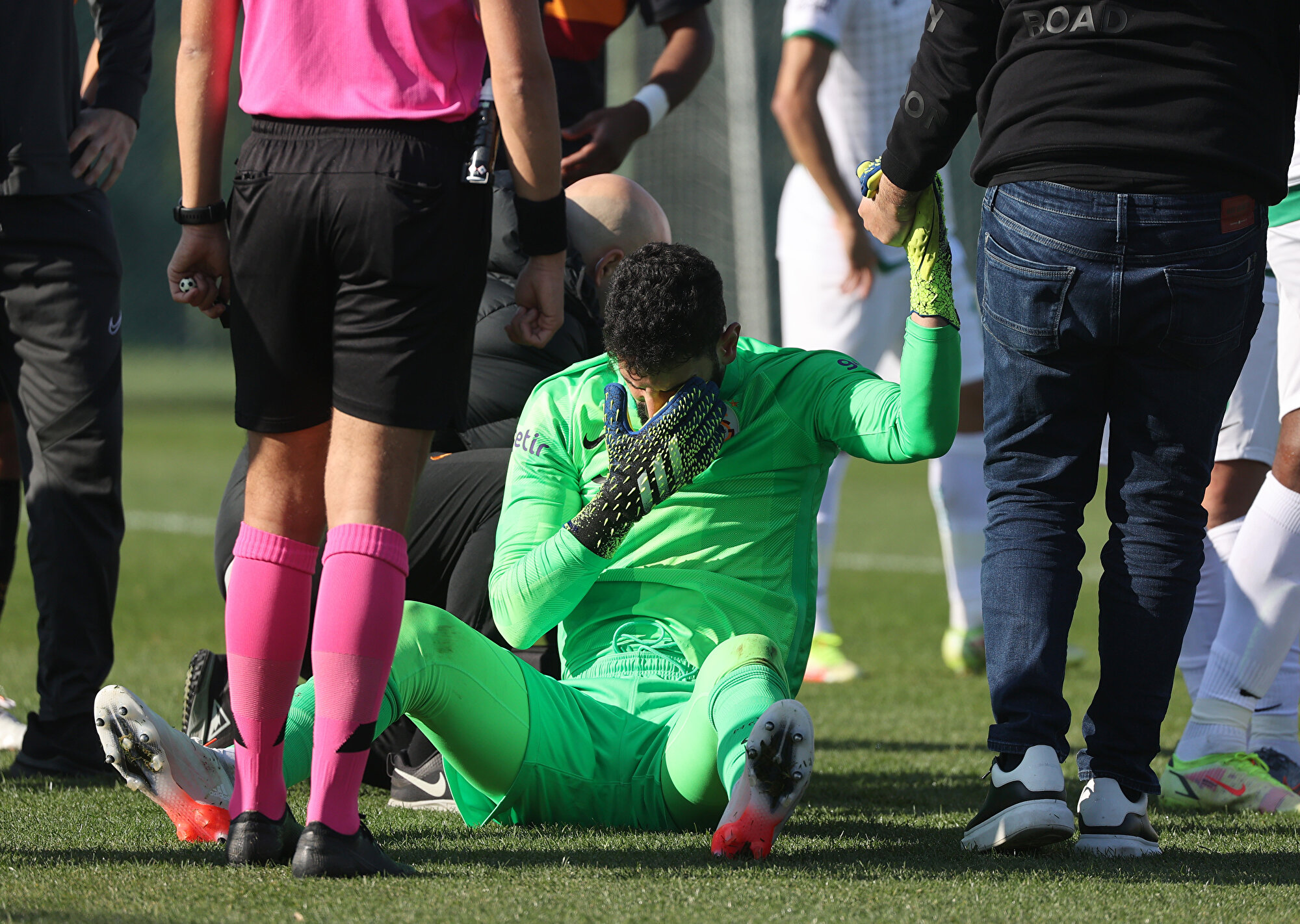 Kaleci İsmail Çipe'nin hatasına öfkelenen Terim, el ve kol hareketleriyle genç eldivene tepki gösterdi.