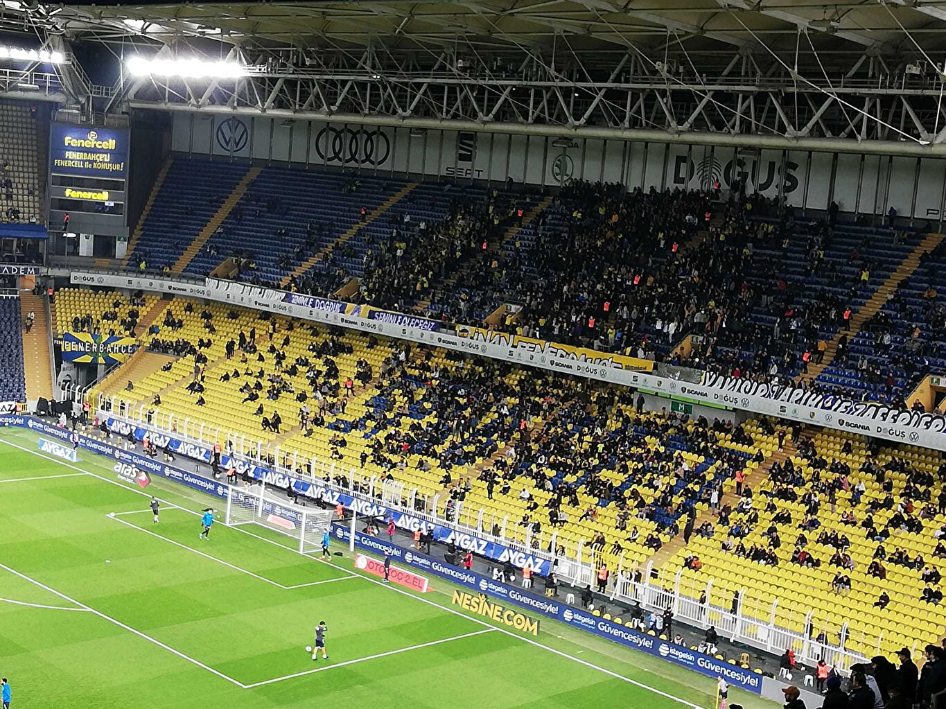 Fenerbahçe taraftarı, Yeni Malatyaspor maçı öncesi ısınmak için sahaya çıkan sarı-lacivertli futbolcuları protesto etti. Bu sırada statta yüksek sesle müzik çalındı. Daha sonra taraftarlar futbolcuları tribüne çağırdı, futbolcular da tribünlere giderek, taraftarları alkışladı. Bu sırada bazı taraftarlar ıslıklarla protesto ederken, bazıları ise alkışladı. Sarı lacivertli taraftarlar karşılaşmadan yarım saat öncesinde statta ‘Formayı çıkarın, çıplak oynayın’ şeklinde tezahüratlarda bulunarak, takıma tepki gösterdi.