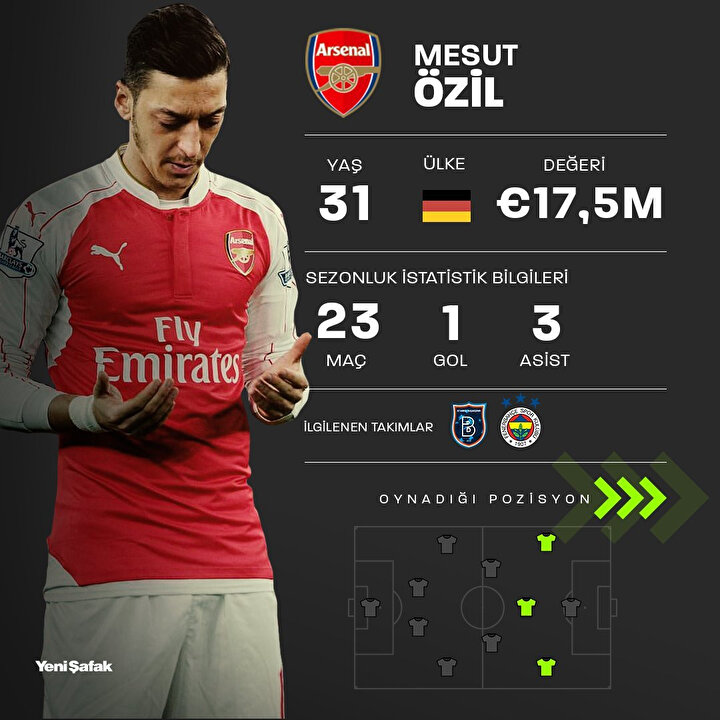 - Ada basınından gelen bu haberler sonrasında Fenerbahçe'nin Mesut Özil için teklifte bulunacağı ve gelecek sezon sarı-lacivertli formayı giydirmek istedikleri öğrenildi.