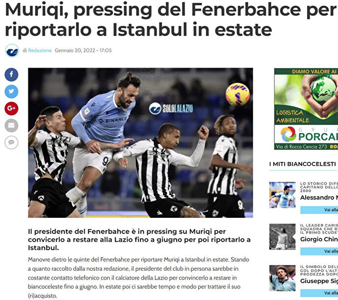 İtalyan basınında yer alan haberlerde, Fenerbahçe'nin Vedat Muriqi'i yaz transfer döneminde bonservisiyle birlikte kadrosuna katmak için, şu anda takımdan ayrılmaması yönünde baskı yapıyor. Lazio'nun Kosovalı oyuncuyu kiralamaya sıcak bakmadığı ve bonservisiyle birlikte göndermek istediği için, sarı-lacivertli takımın bu şekilde bir plan yaptığı iddia edildi.