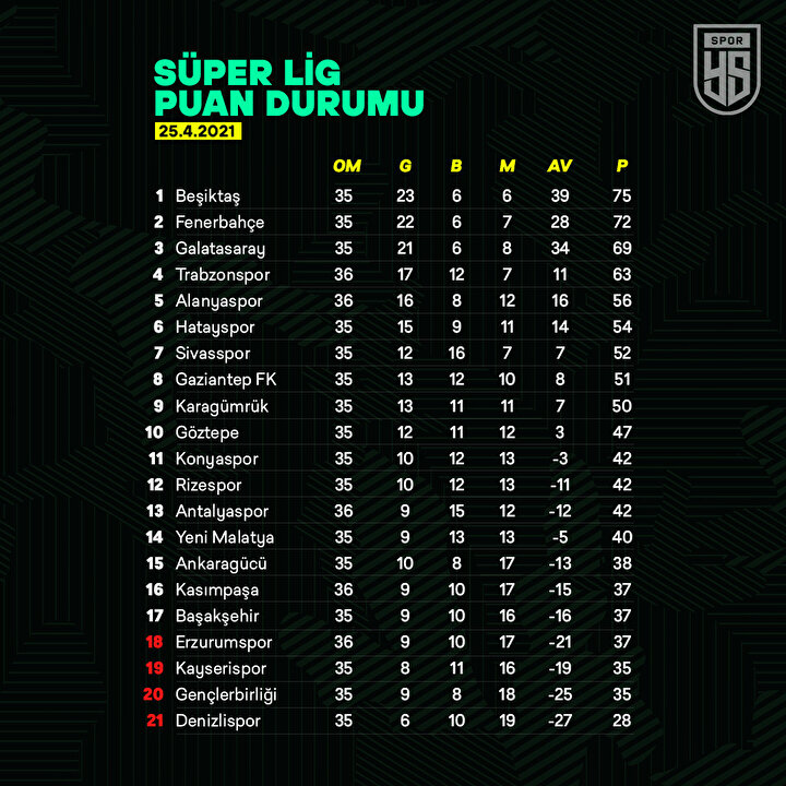 Süper Lig'de haftanın kapanış karşılaşmasında Fenerbahçe evinde Kasımpaşa'yı 3-2 mağlup ederek puanını 72'ye yükseltti. Bu sonuçla birlikte sarı lacivertlilerin lider Beşiktaş ile arasındaki puan farkı 3'e indi.