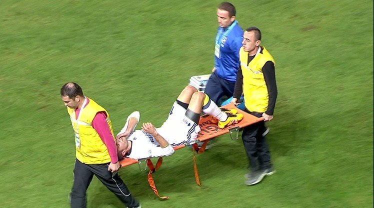 Sedyeyle saha kenarına taşınan futbolcu sonrasında ambulansa bindirildi ve hastaneye kaldırıldı.
