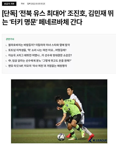 Kore basınından Best Eleven'ın haberine göre Fenerbahçe, Jeonbuk takımında forma giyen 18 yaşındaki merkez orta saha oyuncusu Jin-ho Jo'yu transfer etti. Haberde şu ifadelere yer verildi: