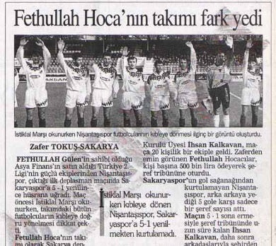 Sabah'ta yer alan habere göre; Fethullah Gülen'in 1996 yılında, İhsan Kalkavan aracılığı ile İstanbul'da mücadele eden Nişantaşıspor'u satın aldığı belirtildi. Beşiktaş'ta yöneticilik yapan ve futbol alanında aktif olan İhsan Kalkavan da takımın başına geçirildi. Ayrıca Nişantaşıspor'un bu satın almanın ardından örgüte ait olan Asya Finans ve Işık Koleji tarafından finanse edildiği dönemin haberlerine düştü.