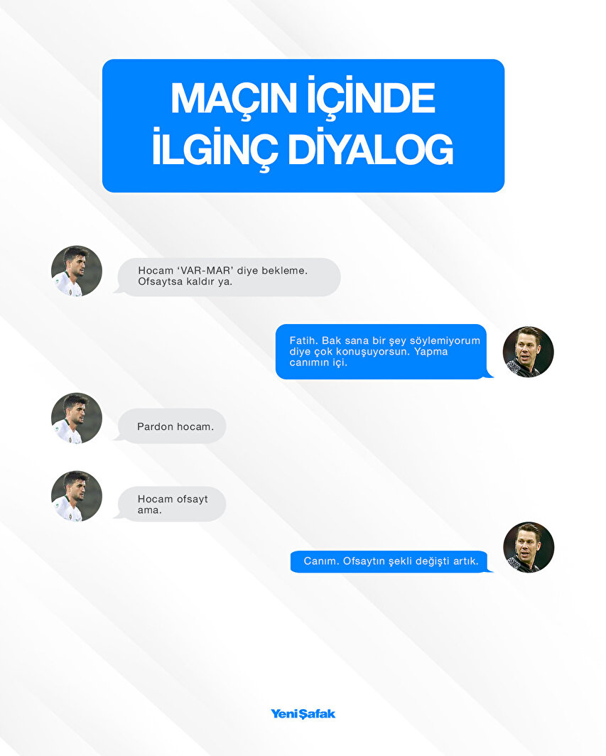 Aydınus, kendisine ofsayt serzenişinde bulunan Fatih Aksoy'a, "Bak sana bir şey söylemiyorum diye çok konuşuyorsun yapma canımın içi" şeklinde uyarıda bulundu.