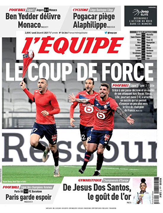 RMC Sport ise Lille'in önemli bir galibiyet aldığını vurgulayarak, "Lille, 2-0 geriye düştüğü maçta Burak Yılmaz'ın iki golüyle bitime dört hafta kala şampiyonluk yarışında kontrolü yeniden devraldı" ifadelerine yer verdi.