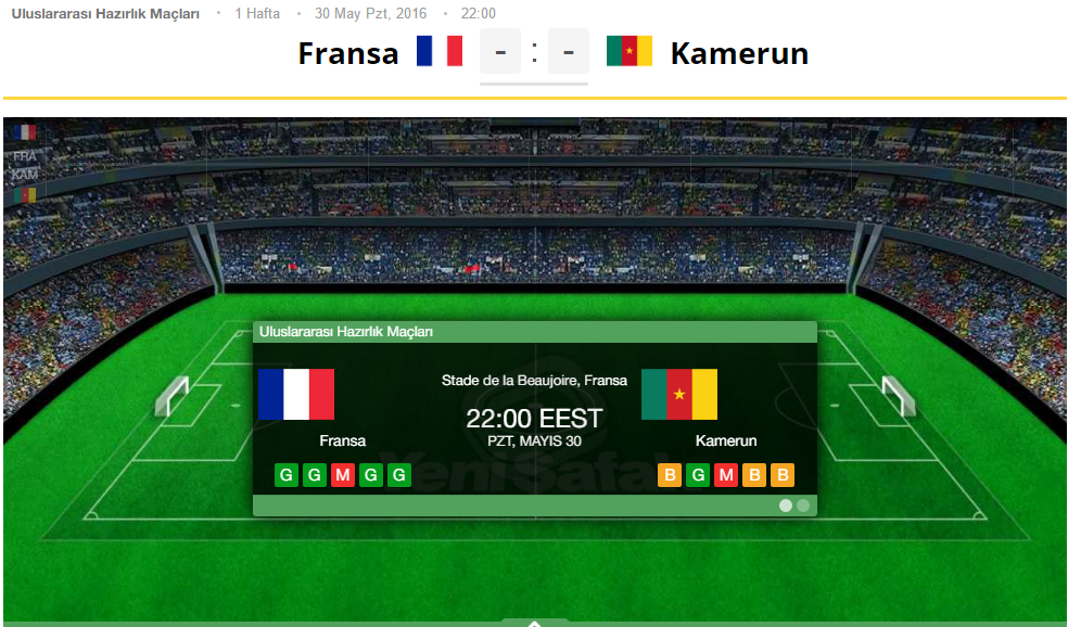 Saat 22.00'daki bu büyük futbol şöleni başlama vuruşuyla birlikte TVNET tarafından sporseverlerle buluşturulacak. Daha önce de iki büyük karşılaşmayı yayınlayan TVNET, sporseverlerden tam not almıştı. Son Dünya Şampiyonu Almanya'nın İngiltere'ye 3-2 yenildiği ve İtalya'yı 4-1 mağlup ettiği maçları ekranlara taşıyarak büyük beğeni toplamıştı. EURO 2016 öncesi son hazırlık maçını oynayacak teknik direktör Didier Deschamps yönetimindeki Fransa, daha önce oynadığı son iki hazırlık maçından da galibiyetle ayrılmıştı.
