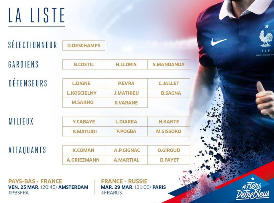 EURO 2016'ya ev sahipliği yapacak olan Fransa'nın aday kadrosu belli oldu. Teknik Direktör Deschamps şantaj skandalında davalık olan Mathieu Valbuena ve Karim Benzema'yı kadroya dahil etmedi.