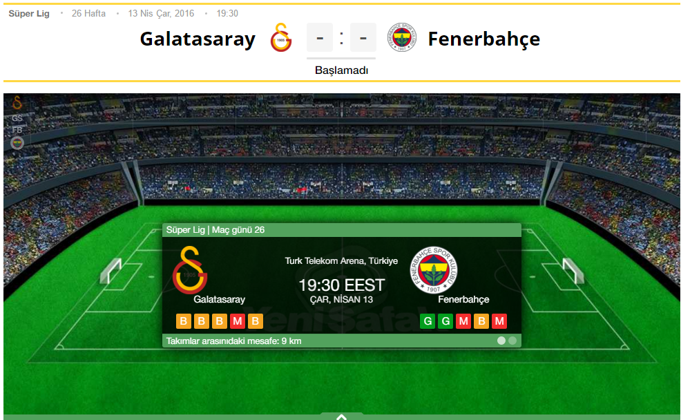 Süper Lig'de 27. haftada Osmanlıspor'la golsüz berabere kalıp 28. haftada Torku Konyaspor'a deplasmanda 2-1 yenilen Fenerbahçe, Beşiktaş ile yaptığı şampiyonluk yarışında önemli kayıplar yaşadı. Sarı lacivertliler Türk Telekom Arena'dan puan çıkaramazsa 2015-2016 sezonunun son 6 maçı öncesi, 66 puanlı lider Beşiktaş'ın 6 puan gerisine düşecek.