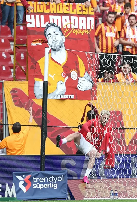 Galatasaray Kulübü, Göztepe müsabakası öncesinde düzenlenen seremonide futbolcularla birlikte İsrail'in soykırımına maruz kalan Filistinli çocuklara yer verdi.