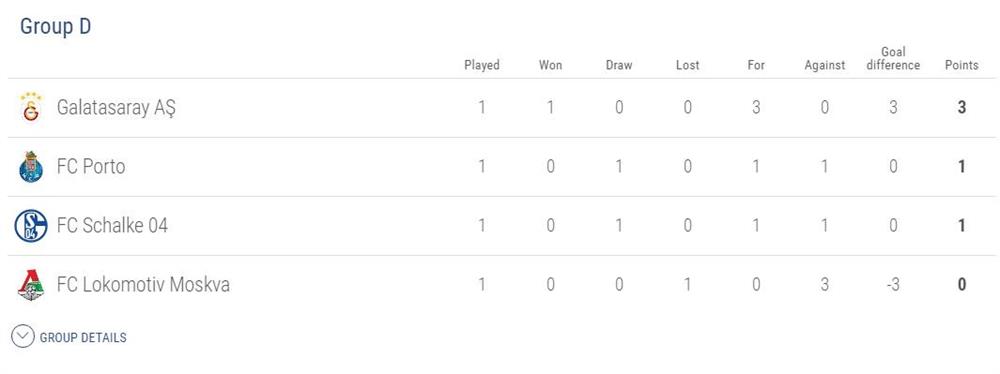 UEFA Şampiyonlar Ligi'ne D grubundan katılan temsilcimiz Galatasaray sahasında Rusya temsilcisi Lokomotiv Moskova'yı 3-0 yenerek ilk maçında 3 puana ulaştı.