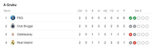 UEFA Şampiyonlar Ligi'nin ilk haftasında Belçika'nın Club Brugge takımıyla deplasmanda 0-0 berabere kalan temsilcimiz Galatasaray, ikinci haftada Fransız ekibi Paris Saint-Germain'e (PSG) sahasında 1-0 yenildi. Grupta averajla üçüncü sırada bulunan sarı-kırmızılı ekip, Real Madrid'i mağlup ederek, iddiasını sürdürmek istiyor.