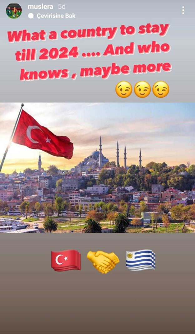 Galatasaraylı futbolcu Fernando Muslera, sosyal medya hesabından yaptığı paylaşımla, sözleşmesi feshedileceği haberlerine gönderme yaptı. Muslera, 2024'e kadar kalmak için ne güzel bir ülke. Ve kim bilir, belki daha fazla" ifadelerini kullandı.
