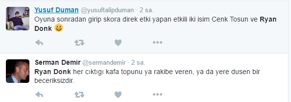 Maçın bitimine 15 dakika kala tüm tribünler Donk'u ıslıklamaya başladı. Hollandalı oyuncu ayağına top aldığı her pozisyonda onbinlerin tepkisine maruz kaldı.