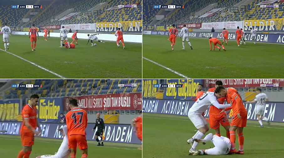 Başakşehir'in milli futbolcusu İrfan Can Kahveci, Ankaragücü maçında rakip takım oyuncusu Atakan ile gerginlik yaşadı. Kahveci yerde kaldığı pozisyon sonrasında Atakan'ın üzerine yürürken takım arkadaşları tarafından zor sakinleştirildi.