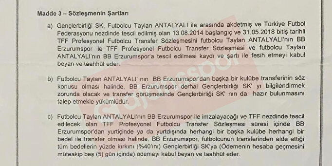 - “Profesyonel futbolcu Taylan Antalyalı ile 2019-2020 futbol sezonundan başlamak üzere 4 sezon için aşağıdaki şartlarda anlaşmaya varılmıştır.