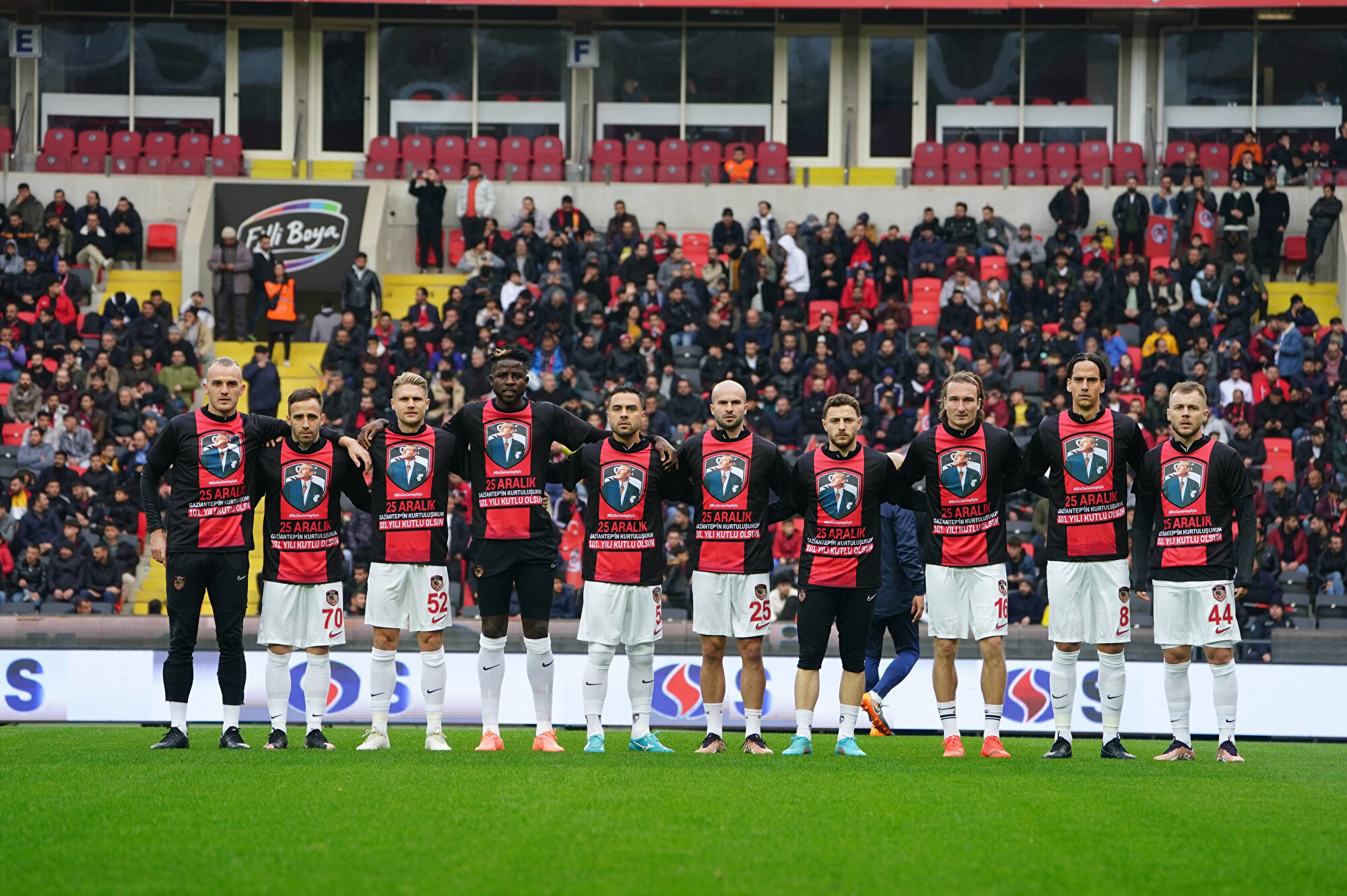 Gaziantep FK'li futbolcular kentin düşman işgalinden kurtuluşunun 101. yıl dönümü anısına maç öncesi sahaya, "25 Aralık Gaziantep'in Kurtuluşu kutlu olsun" yazılı pankartla çıktı. Kırmızı-siyahlı ekip, maç öncesi ısınma çalışmalarını ise "25 Aralık Gaziantep'in kurtuluşunun 101. yılı kutlu olsun" yazılı tişörtle gerçekleştirdi.