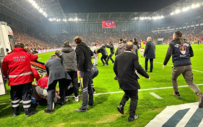 Aldığı darbeler sonrasında kaleci Ozan Evrim Özenç yerde kaldı. Yayıncı kuruluş tarafından verilen bilgide, hastaneye kaldırılan kaleci Ozan'ın, bilincinin açık olduğu ifade edildi.