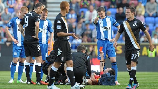 Premier Lig'de 4 yıl önce oynanan Wigan-Fulham maçı da benzer bir olaya sahne oldu. Maçın 14. dakikasında Watson ile Sidwell'in ikili mücadelesinin arasında kalan hakem Lee Probert sakatlandı. Tedavisi devam ederken kırmızı kart gösteren hakem Probert, tribünlerin keyifli vakit geçirmesini sağladı.
