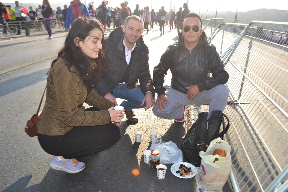 7'den 70'e binlerce insan ilginç görüntüler oluştururken, bazı vatandaşlar giydikleri giysiler ile dikkat çekti; bazıları köprüde kahvaltı yaptı, bazıları taşıdıkları pankartlarla mesaj verdi, bazı vatandaşlar da selfie çekmenin tadını çıkardı.