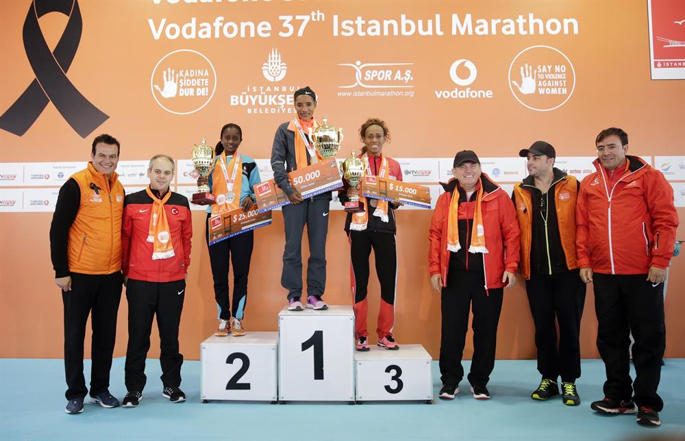 Kadınlarda ise Amane Gobena Sultanahmet Meydanı'nda sona eren 42 kilometre 195 metrelik maratonu ilk sırada tamamladı. Geçen yılda ipi göğüsleyen Etiyopyalı Gobena, üst üste ikinci kez ilk sırayı elde etti. Etiyopyalı Zerfie Limeneh Tadese ikinciliği kazanırken, Etiyopya asıllı Türk sporcu Meryem Erdoğan ise üçüncü olmayı başardı.