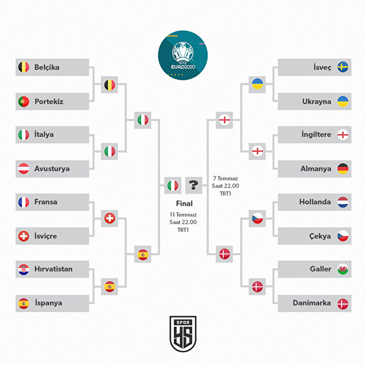 - Turnuvanın diğer yarı final maçında bugün İngiltere ile Danimarka, Wembley Stadı'nda TSİ 22.00'de karşı karşıya gelecek.